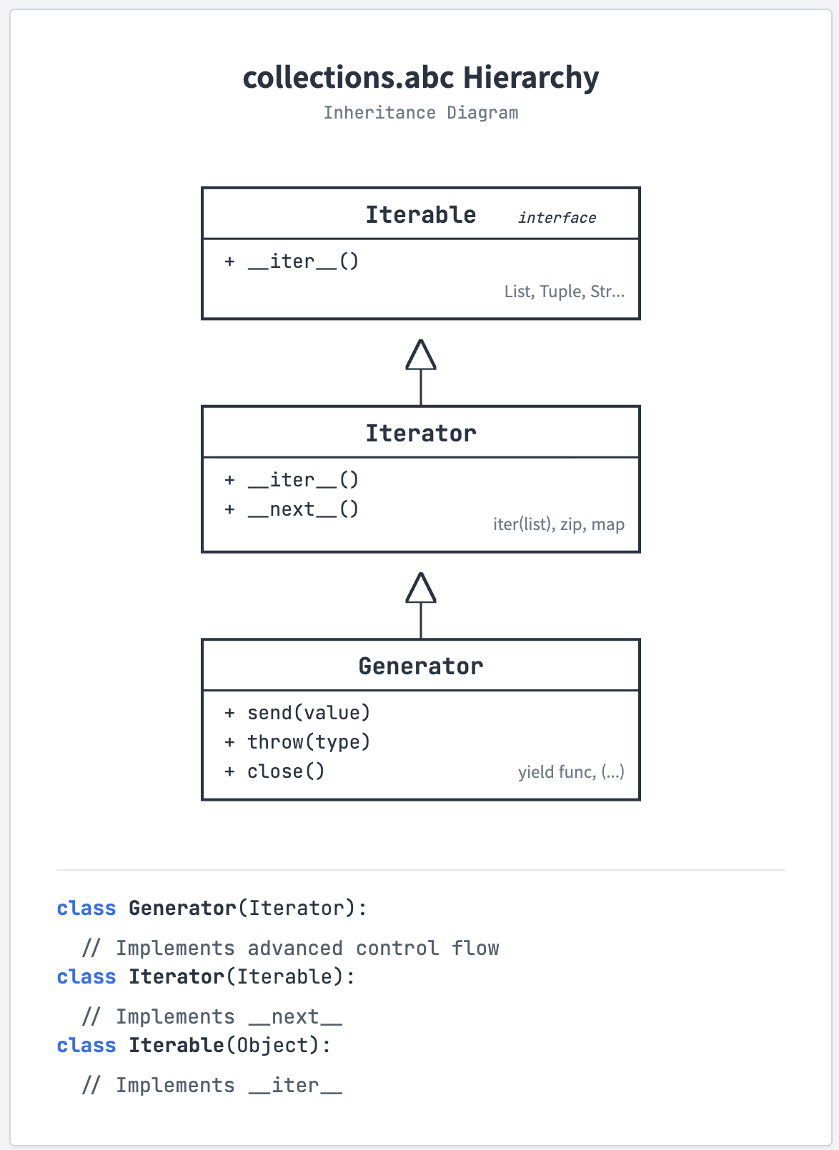 파이썬의 추상 베이스 클래스(collections.abc)를 사용하면 이 족보를 눈으로 확인할 수 있습니다.